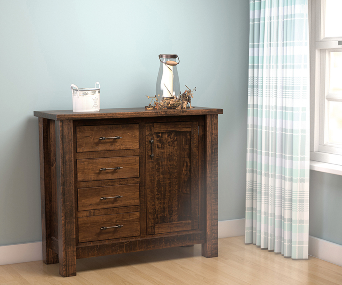 Features: • Dovetailed drawers • Full extension drawer slides • Two adjustable shelves behind door