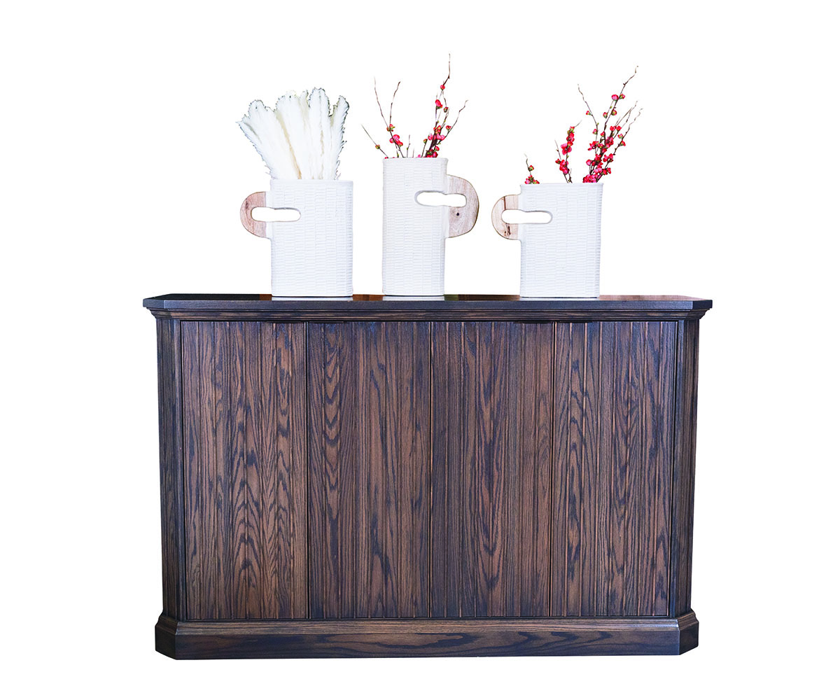 Features: • Beaded door design • Two drawers behind doors • One adjustable shelves behind each set of doors